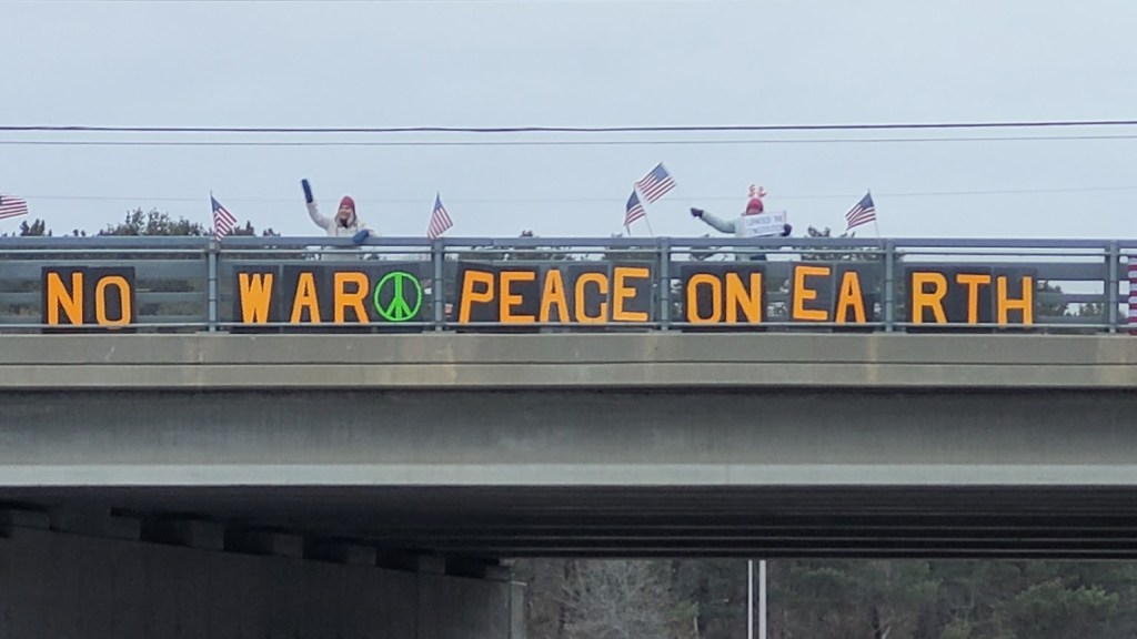 The week finishes with two highway overpass actions! There is the Visibility Brigade on the Essex Street I-95 overpass at the new time of 3:00 p.m. Learn more here. Tell them you read about it here!