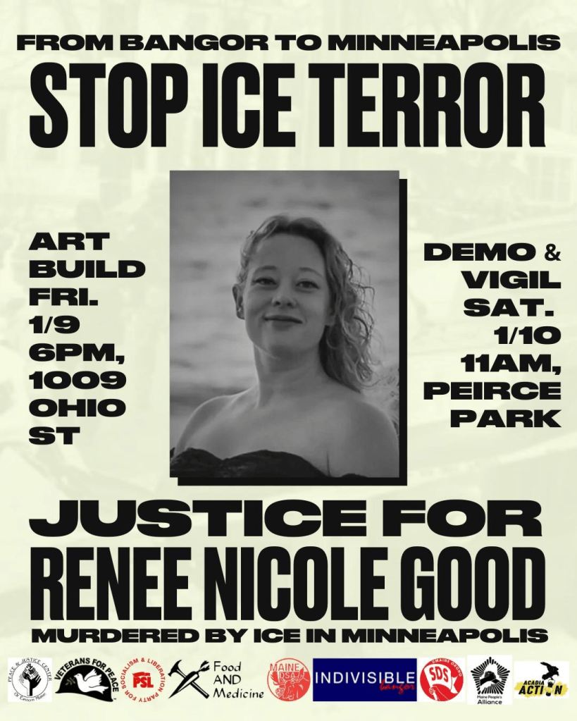 Good morning. There’s a lot going on and I am away right now, so I will be sending the newsletters sporadically for a few days. The biggest thing right now is the protest in Bangor and many other places throughout the state and country TODAY against the murder of Renee Nicole Good by ICE agent Jonathan Ross in Minneapolis. ~~George