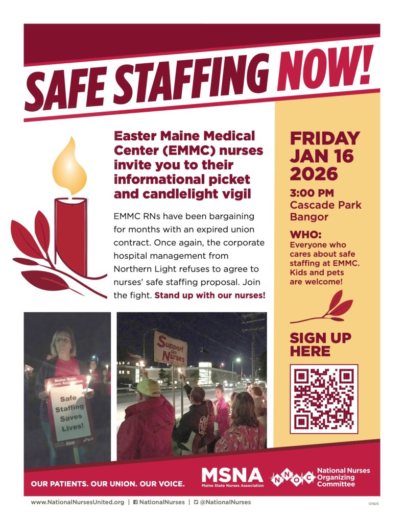 Come out and show your support for our nurses, who have been in tough negotiations with Northern Light (EMMC). Help show Northern Light EMMC that our nurses’ needs are important, as are our patients and we’re ready to stand with MSNA as they fight for what’s right.