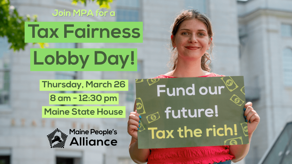 With key budget decisions happening now, it’s critical that lawmakers hear from us about funding what Maine communities need, including childcare, housing, and health care. The best way to get there is by making sure the wealthiest Mainers and profitable corporations pay their fair share.