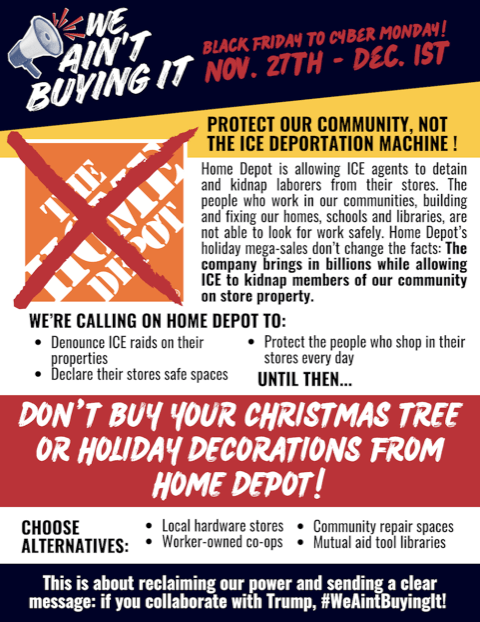 Home Depot continues to allow ICE to terrorize, intimidate, and abduct people, non-citizens and citizens alike, from their property.