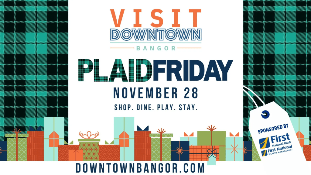 “Plaid Friday is the fun and enjoyable alternative to the big box store “Black Friday” and is designed to promote both local and independently owned businesses during the holidays. Downtown Bangor retailers have special offerings ranging from discounts for those wearing plaid to free gift wrapping and other surprises!”