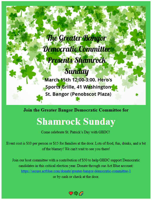 here. Go to the same link to sign up for demonstrations in other areas. If you are interested in being a march leader, contact Elizabeth at leonardelizabeth1957@gmail.com. (We are looking to have converging marches from different parts of town.)Support Patric Moore who is a Democrat running for State Senate in Maine District 16 by contributing to his clean election fund here and supporting seed money for his election expenses here. Patric will be running against Republican Scott Cyrway who votes party line Republican.