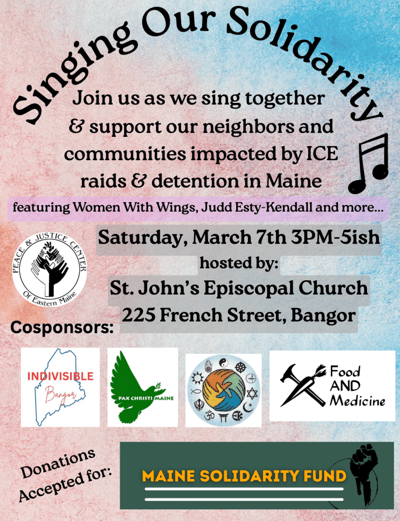 sponsors Indivisible Bangor, Pax Christi Maine, Faith Linking in