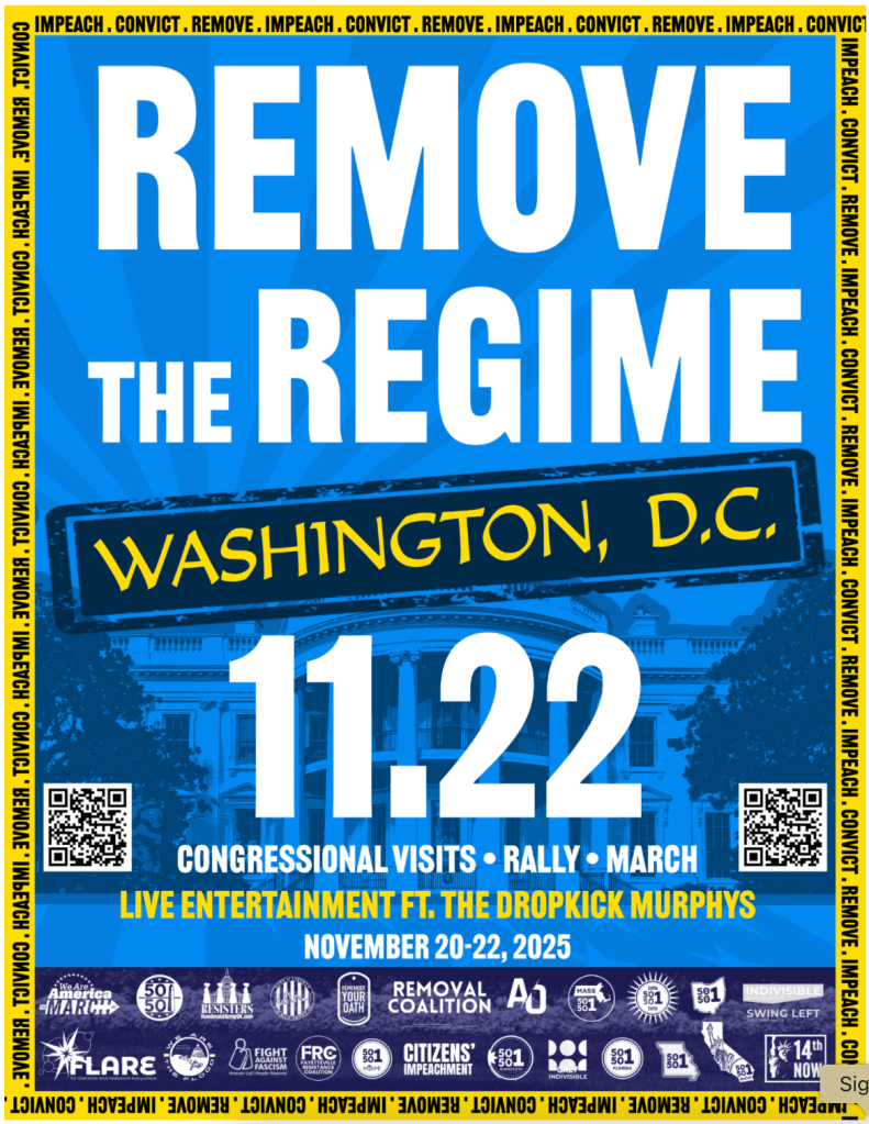 This is not a 50-state protest. On November 22, 2025, we will peacefully descend on the seat of power in Washington, DC to demand that this lawless administration come to an END.